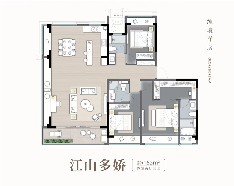领创扬州户型设计典范、精著洋房,独立玄关,巨幕无柱宽厅,LDK一体化规制,纵享270°环幕观景视野(建筑面积约165㎡户型),每一眼皆让人心怀澎湃。