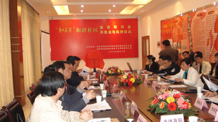 4月10日,扬州精神文明建设指导委员会办公室与新能源虎豹开发有限责任公司共同举办的和美第;和谐社区建设研讨会暨共建基地揭牌仪式在新能源月亮园会所举行。市精神文明办王晓庆主任、新能源置业集团包广林董事长及市房管局、市民政局、市环保局、扬大房地产研究所相关负责人出席了此次研讨会。
