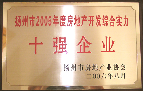 2006年8月17日,扬州市房产管理局、扬州市房地产业协会在扬州天地大酒店举行了2005年度扬州市房地产开发综合实力10强;企业授牌仪式,集团公司名列10强;榜首,再拔头筹。