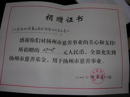 5月26日下午,集团公司在淮左郡中心会所举行隆重的捐资助学仪式,引起社会各界的极大关注。集团公司在十周年庆典之际,真情回报社会,向市慈善总会捐赠200万元,每年拿出10万元用于慈善事业,这是市慈善总会成立以来收到的最大的一笔民营企业捐赠款项。同时市慈善总会新能源助学基金也正式启动,该公司干部员工不忘贫困学生,当场捐赠49025元帮扶贫困学生完成学业,市慈善总会授予新能源董事长、总经理包广林先生为扬州市慈善总会副会长;称号。集团公司自96年成立以来成功开发了望月苑、咏月苑、得月苑、栖月苑、月亮园、新能源大厦和金鼎国际公寓,正在开发淮左郡庄园、金旺阁、公元国际大厦、奥都花城和杭集新隆商厦,累计竣工面积达到61.59万平米,实现销售额14.62亿元,入库税金1.2亿元,取得了经济效益和社会效益双丰收。