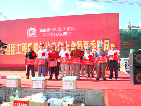 新能源置业集团公司领导、业主代表分别对战高温、冒酷暑,奋战在新城市花园施工现场的广大建设者、工程监理人员表示衷心感谢,希望广大建设者再接再厉,比学赶超,齐心协力,狠抓施工质量,实施全过程监理,将新城市花园建设成苏中大地的一座东方明珠,力争在2008年春节前新城市花园第一组团成为泰兴新区一道靓丽风景,加速新区的腾飞。