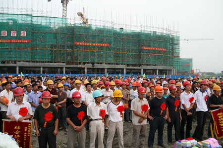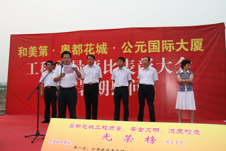 8月6日下午,和美第工地现场彩旗飘扬,人头簇拥,新能源集团和美第、奥都花城、公元国际大厦工程质量评比表彰大会隆重召开。新能源集团董事长包广林、新能源虎豹房屋开发有限责任公司总裁顾载兵等公司领导出席了表彰会。 新能源集团一直以对业主高度负责的精神抓好工程质量。此次表彰大会更是花费了十几万元为建设工人购买了生活用品及对获奖的先进建设单位发放奖金。现场,新能源虎豹房屋开发有限责任公司领导宣读了先进施工建设等单位和班组名单,并颁发了奖励。