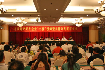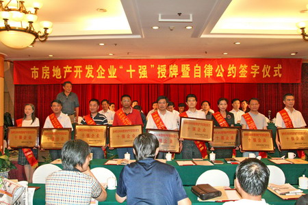 2006年度扬州房地产开发综合实力十强企业新鲜出炉;。江苏新能源置业集团有限公司再度荣获十强之一。集团公司张有龙总监出席了颁奖仪式,并参加了扬州房地产开发综合实力自律公约的签约活动。