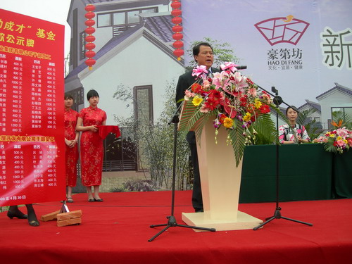 4月30日,新能源;又推新项目,位于仪征新集镇的豪第坊;项目举行开工奠基仪式。 豪第坊;项目占地近480亩,是由独栋别墅、联排别墅、情景洋房、沿河观景洋房等多种建筑形态组成的高品位大型社区。豪第坊;项目将把汉文化、盐商文化和农耕文化进行提取和糅合,深度诠释骨子里的扬州;这一核心理念。今年国庆节期间该楼盘将上市销售。同时,豪第坊;项目形象代言人杨婧小姐,将项目代言费2万元捐给扬大管理学院,江苏新能源置业集团公司与扬州新能源虎豹房屋开发有限公司的干部职工也向扬大捐献了9.2万元的爱心助成才;基金。