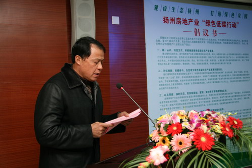 董事长包广林宣读《扬州房地产业绿色低碳行动倡议书》