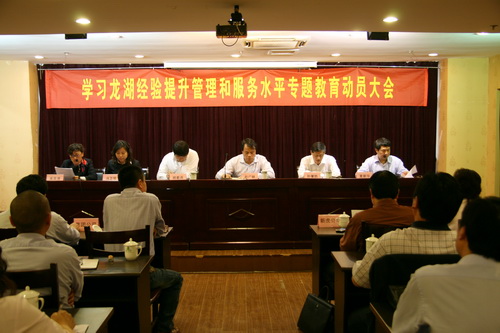 五月四日下午,新能源集团在金鼎酒店召开学习龙湖经验,提升管理和服务水平专题教育报告会;。董事长包广林作了全面的动员报告,会上还分别由赴重庆龙湖房地产公司考察的两批人员进行考察报告的学习。了解到重庆龙湖房地产公司成立于1996年,经过15年的发展,已成为拥有4000多名员工,年销售额连续3年过百亿的房地产上市(HK)企业。龙湖公司发展速度之快,规模之大令人震撼。董事长包广林强调,龙湖公司在理念上践行善待你一生;,在管理上注重沟通、简单、直接;,在决策上切忌手比脑子快;的经验做法,让人深思。为认真学习龙湖经验,全面提升新能源品牌效应。新能源集团经研究决定,进行开展学习龙湖经验,提升管理和服务水平;的专题教育活动。集团将通过分阶段、分工种、树典型,开展专题教育活动,提高全员以龙湖为标杆,反骄破满,追求卓越,加快提升管理和服务水平的紧迫性和重要性的认识;动员全员对照龙湖经验,深刻反思,排找差距,落实措施,整改见效;树立全员赶超龙湖的信心,自觉履行三个责任,努力开拓创新,以崭新的风貌出现在扬城人民面前,赢得公司更好更快的发展。