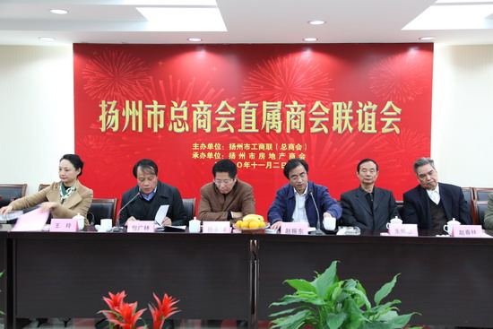 11月2日下午,扬州市总商会直属商会联谊会在公元国际大厦举行,会议传达了10月23日举行的省民营企业经济工作会议;精神,并针对扬州民营企业、尤其是民营房地产企业如何适应新的经济形势进行了一些交流和探讨。