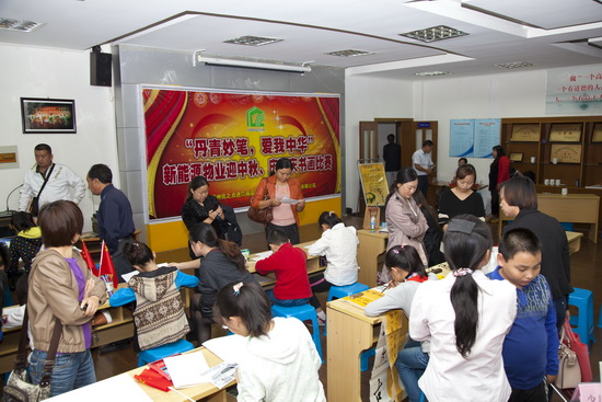 9月29日晚7点,新能源物业公司在月亮园小区内举办丹青妙笔,爱我中华;迎中秋、庆国庆书画比赛。为了本次活动取得圆满成功,新能源物业做了精心策划和准备,旨在通过组织新能源各小区业主发挥自身优势,创作以爱国;为主题的书画作品,为祖国献礼,表达对伟大祖国的热爱,同时也为业主和物管之间提供了一个沟通交流的平台。