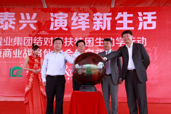 在落成仪式上,江苏新能源置业集团有限公司泰兴分公司的20名员工与来自黄桥老区的20名特困学生结对,现场给每个特困生发放助学金500元及书包等学习用品,每个爱心员工将一对一地资助这些学生直至大学毕业。