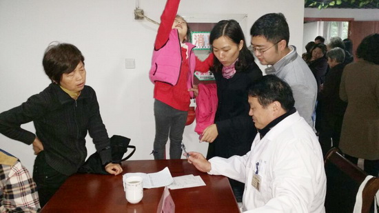 2014年11月1日,天空下着毛毛细雨,一群身着白衣的医师和专家来到和美第小区进行义诊活动。下午2:30,和美第小区的业主早已排成了一条长龙;等候义诊。应邀前来现场的苏北医院内科、骨科、儿科等专家、医师热情的为小区业主进行义诊。免费为小区业主现场体检,测血压、血糖、看病,开处方签,并接受老年疾病预防与健康和日常生活、起居等健康知识咨询。