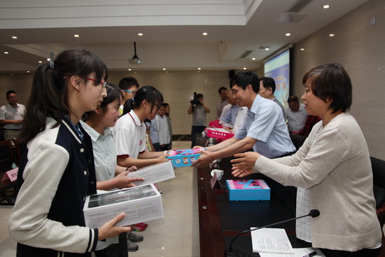 新能源集团公司向参加活动的受助学生捐赠课外阅读书籍一套。结对帮扶的公司员工和学生进行面对面的交流。