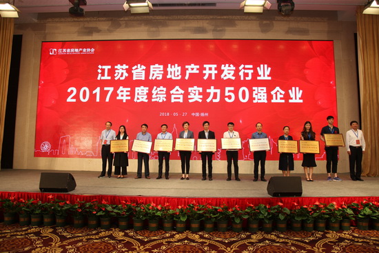 5月27日,2018江苏房地产开发行业高峰论坛在扬州迎宾馆举行,会上对2017年江苏省房地产企业50强进行了颁奖,江苏新能源置业集团有限公司榜上有名,列第12位,这是新能源集团公司第15次获此殊荣。2017年江苏省物业服务行业综合实力50强企业也同时公布,江苏新能源物业服务有限公司名列其中,列第19位,这是新能源物业第6次入榜。