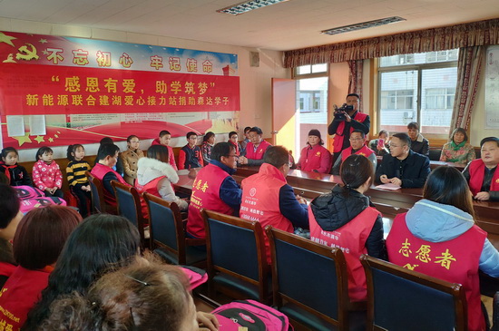 另据报道,11月22日下午,新能源置业集团联合建湖爱心接力站走进县实验小学森达校区,向10名优秀贫困学生每人赠送了300元现金以及书包、文具盒、作业本等学习用品。