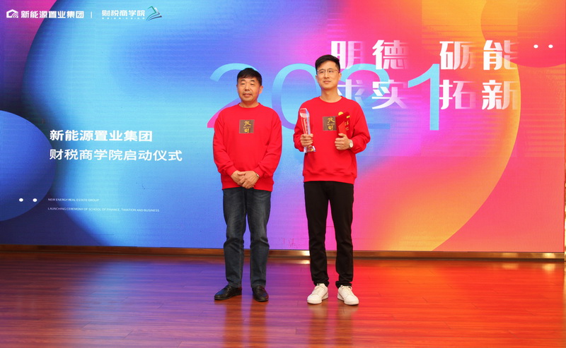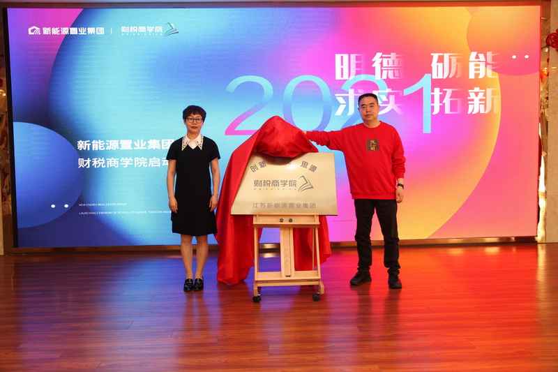 在热烈的掌声中,总裁王秋云和院长丁璟瑶共同为“财税商学院”揭牌。