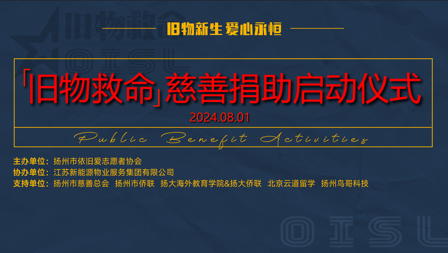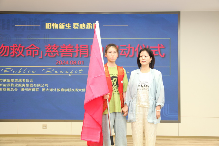 81旧物救命慈善捐助启动仪式在新能源数智大厦举行。此次活动由扬州市依旧爱志愿者协会主办,江苏新能源物业服务集团有限公司协办,扬州市慈善总会扬州市侨联、扬州大学海外教育学院、北京云道留学咨询有限公司、扬州鸟哥科技有限公司等为支持单位